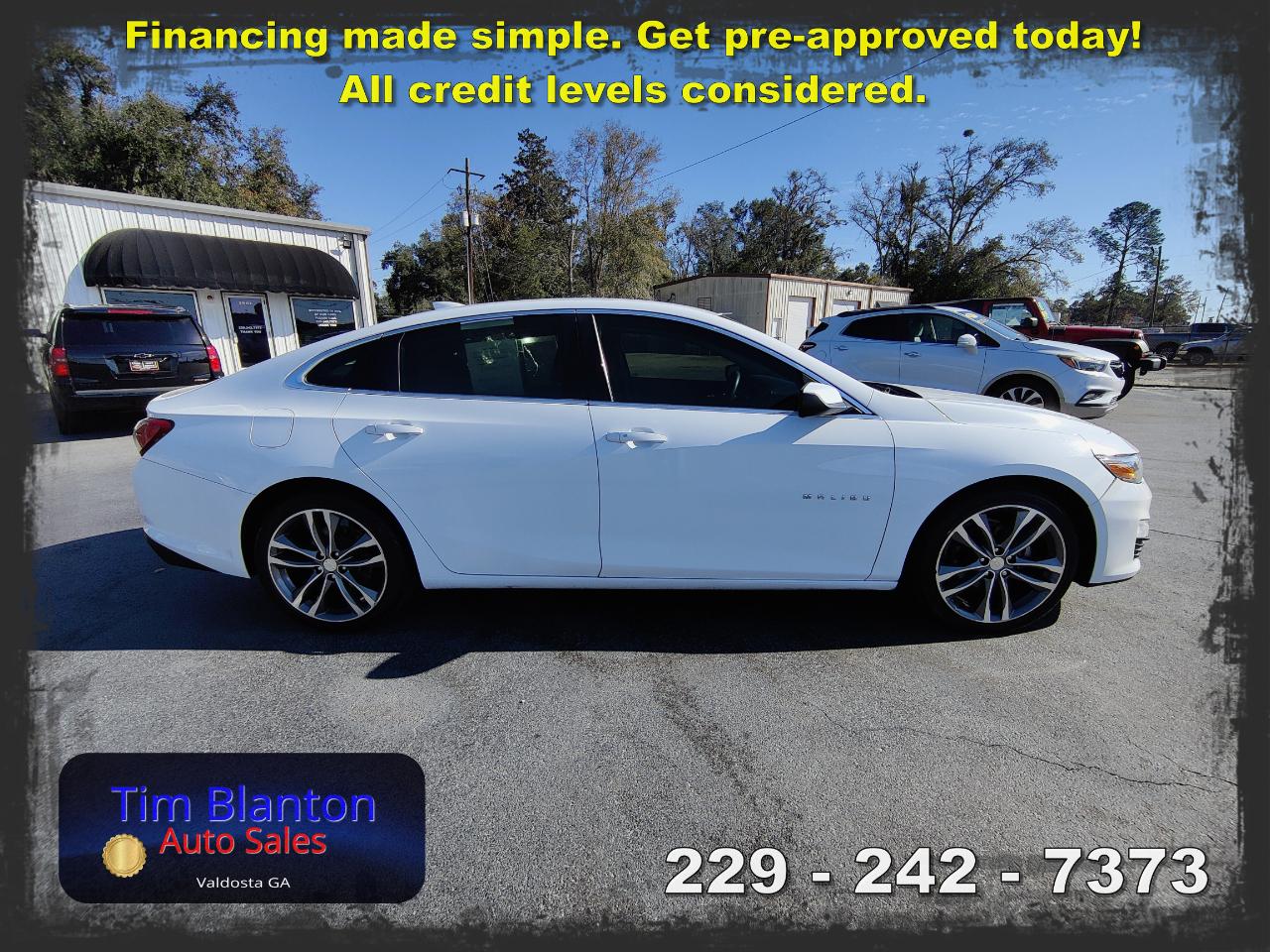 2021 Chevrolet Malibu LT – Sleek Style with Everyday Efficiency This 2021 Chevrolet Malibu LT delivers a smooth, comfortable ride with modern styling and impressive fuel efficiency. Powered by a responsive 1.5L turbocharged engine, it offers the perfect balance of performance and economy for commuting or road trips. The LT trim adds premium touches like remote start, a power driver seat, dual-zone climate control, and a large touchscreen with Apple CarPlay and Android Auto. You’ll also enjoy advanced safety features including a backup camera, stability control, and multiple airbags for added confidence on the road. With its roomy interior, quiet ride, and sharp design, this Malibu is built for comfort and reliability every mile. Drive home in style from Tim Blanton Auto Sales — where quality vehicles and hometown service come standard!