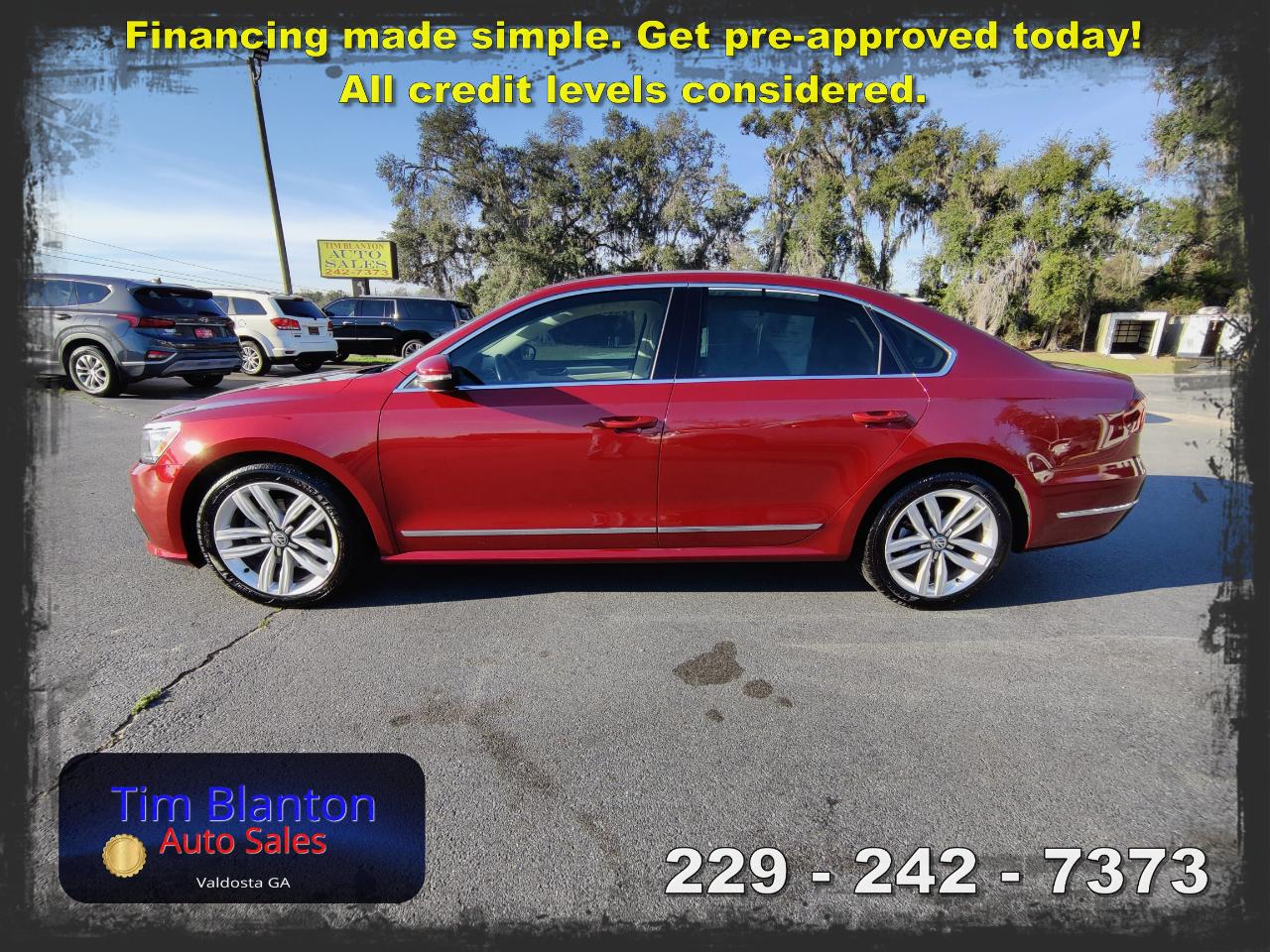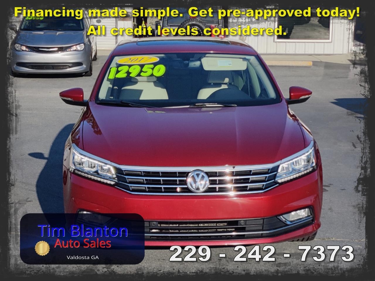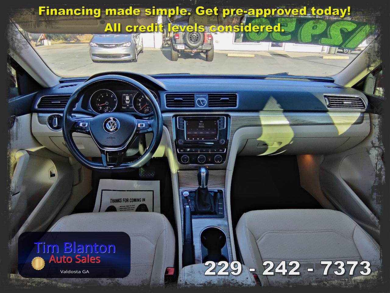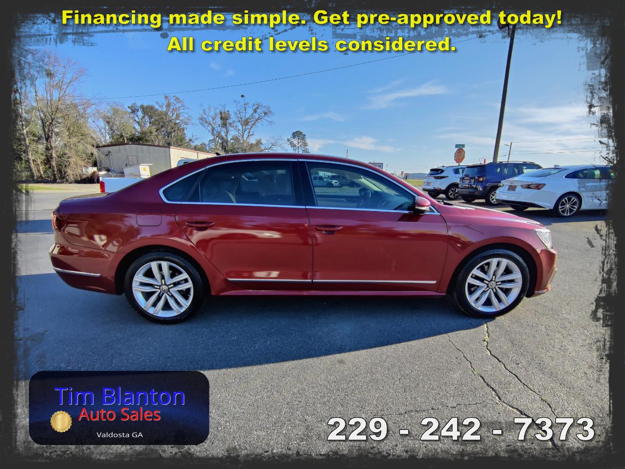 2017 Volkswagen Passat SE – Spacious Comfort with European Style This 2017 Volkswagen Passat SE offers a smooth, comfortable ride with the clean styling and solid feel Volkswagen is known for. Powered by an efficient and responsive engine, it delivers dependable performance while maintaining excellent fuel economy. The SE trim adds premium touches like leatherette seating, a power driver’s seat, heated front seats, a touchscreen infotainment system, and a backup camera for added convenience. With its roomy interior and large trunk, this Passat is perfect for commuting or road trips alike. See it today at Tim Blanton Auto Sales — where quality vehicles and great value come standard!