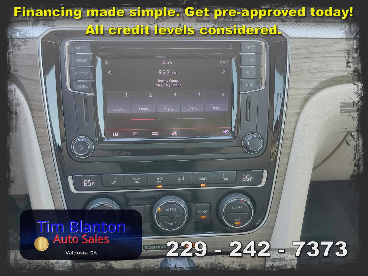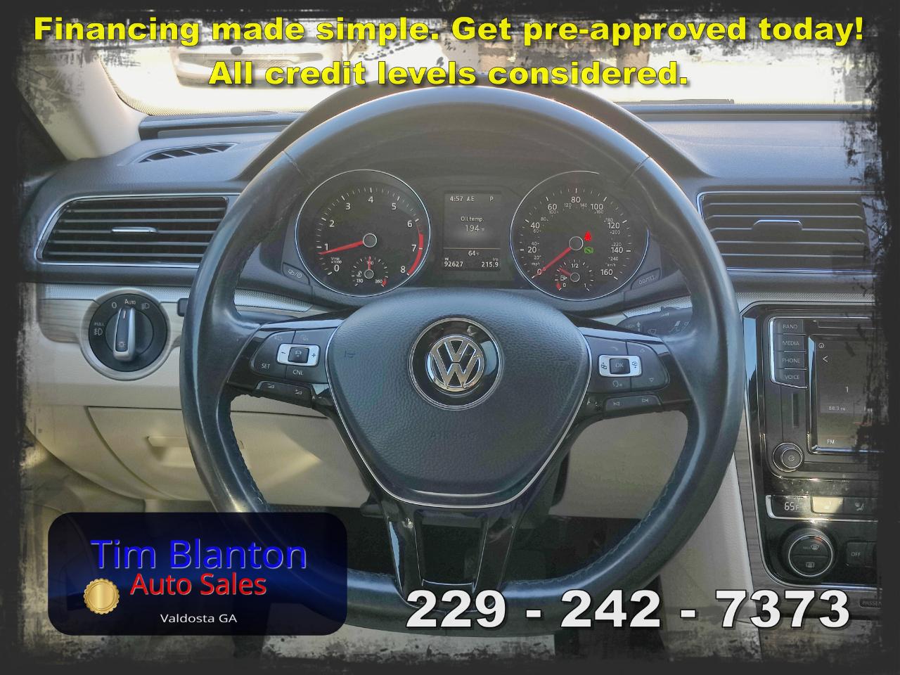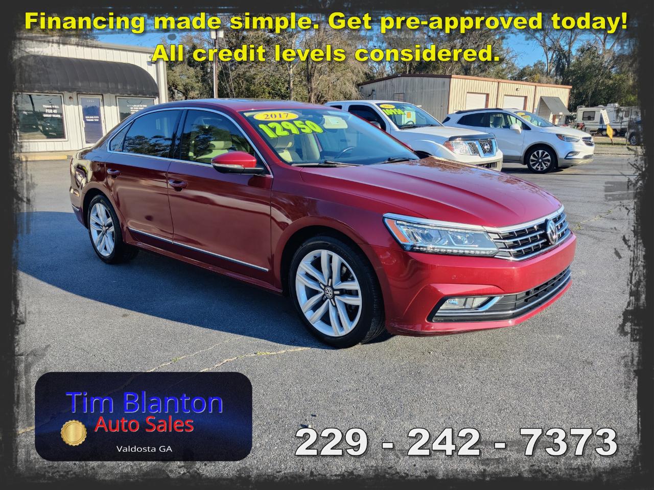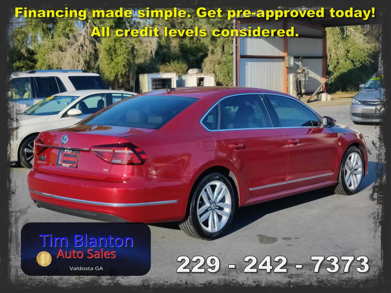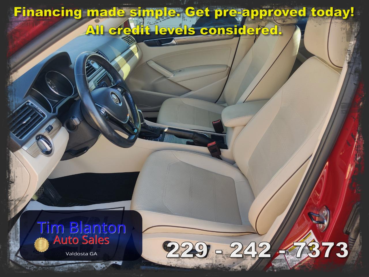 2017 Volkswagen Passat SE – Spacious Comfort with European Style This 2017 Volkswagen Passat SE offers a smooth, comfortable ride with the clean styling and solid feel Volkswagen is known for. Powered by an efficient and responsive engine, it delivers dependable performance while maintaining excellent fuel economy. The SE trim adds premium touches like leatherette seating, a power driver’s seat, heated front seats, a touchscreen infotainment system, and a backup camera for added convenience. With its roomy interior and large trunk, this Passat is perfect for commuting or road trips alike. See it today at Tim Blanton Auto Sales — where quality vehicles and great value come standard!